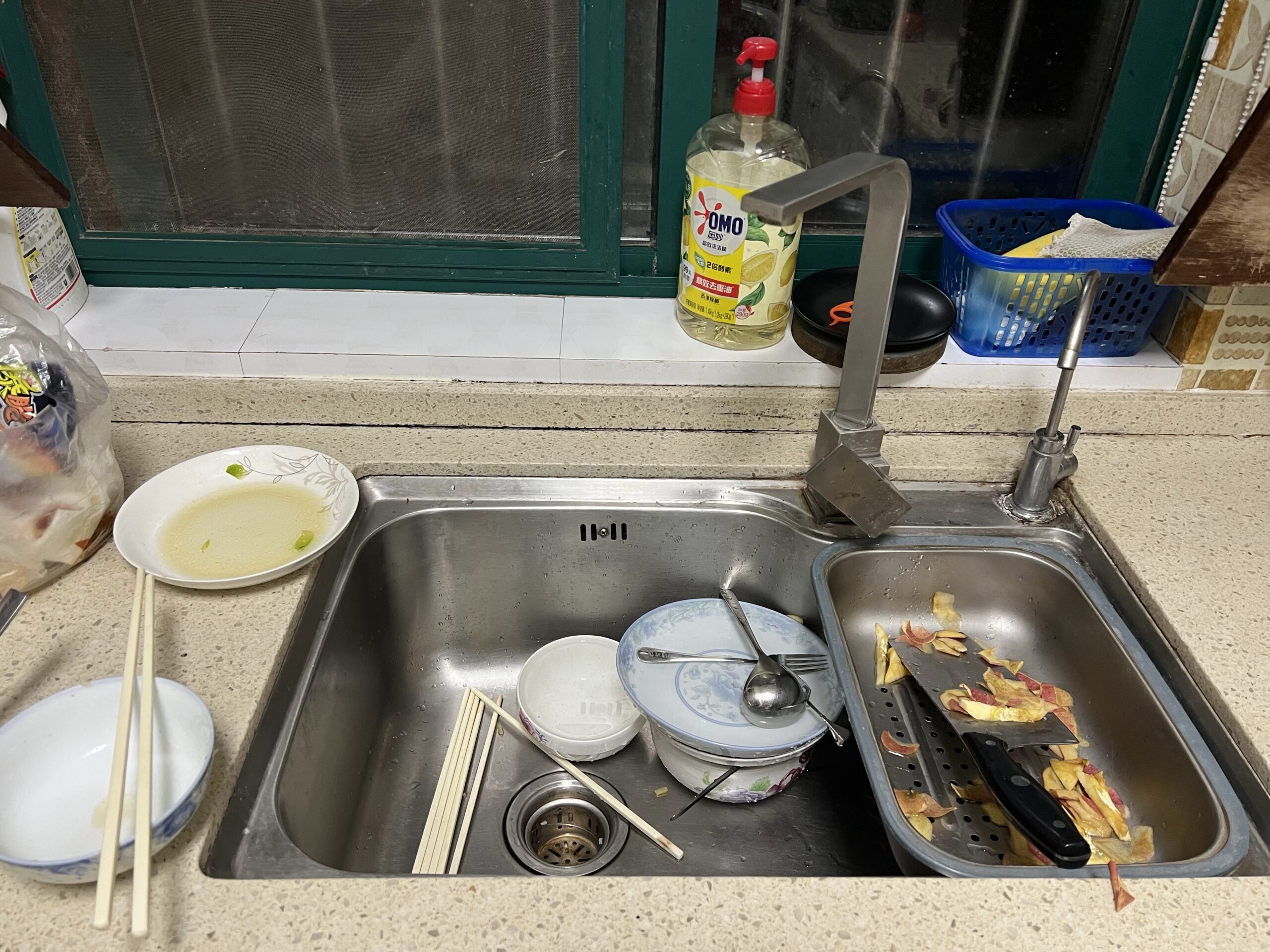 11:25,厨房那个样子我看不下去,到房间邀大女儿一起洗,我洗大女儿清,毕竟她爸说了一句让她洗。大女儿拒绝,说,不能总这样,没有沟通,也没有好好说,为何总是我们让步和兜底。