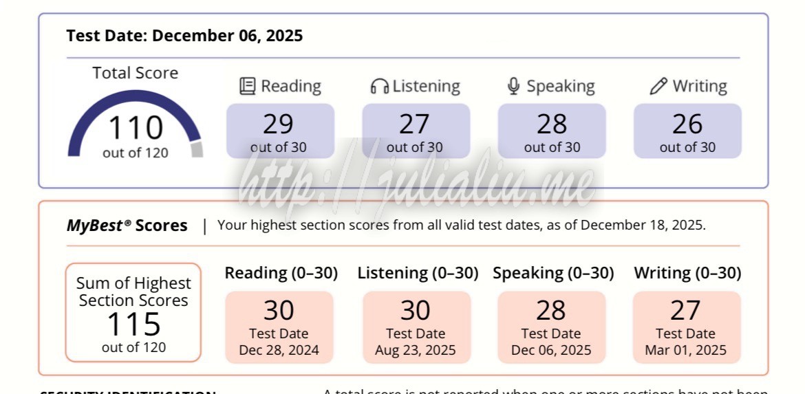 祝贺姐姐托福110